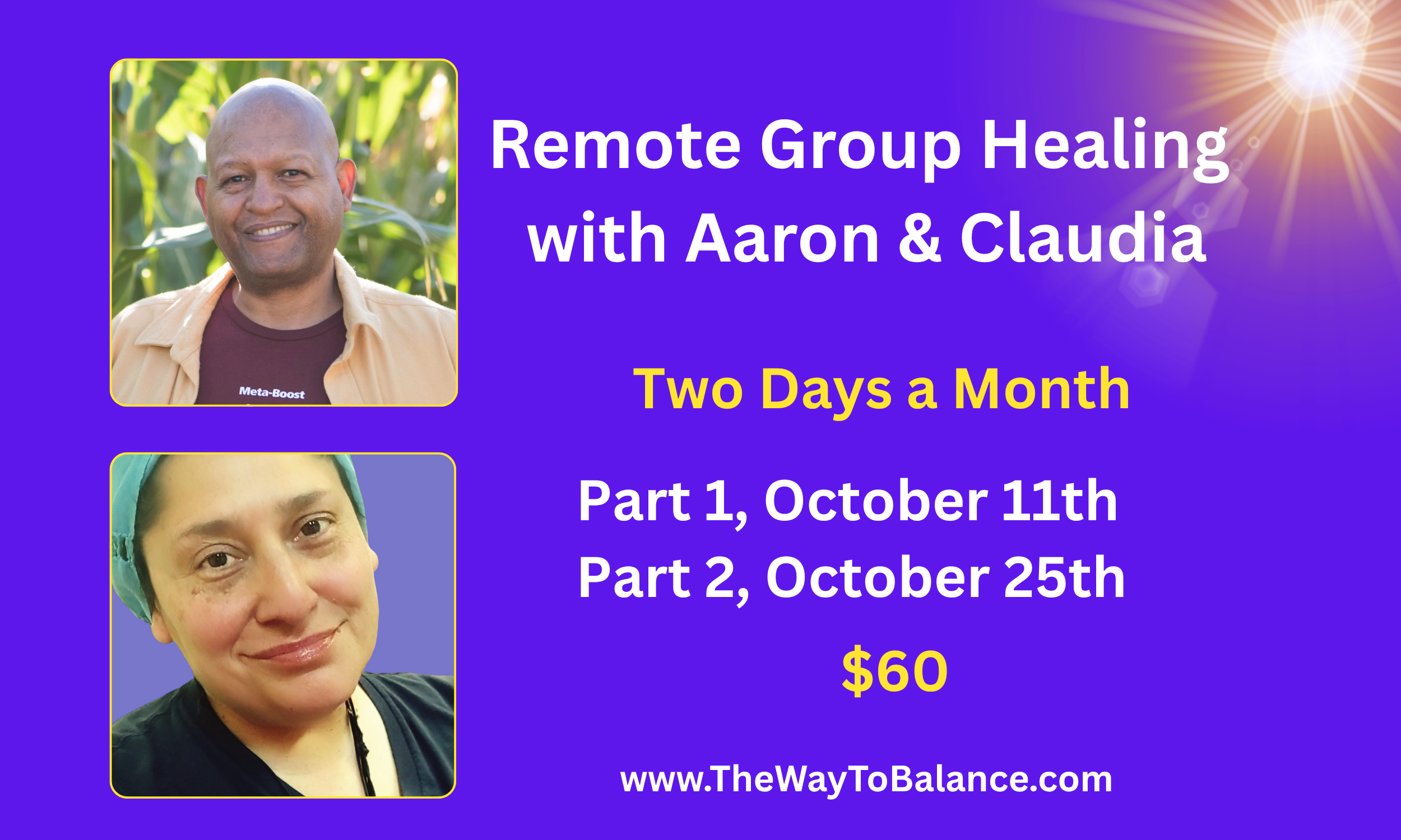 Join Aaron Singleton and Claudia Sanchez for 2.5 hours of unlimited healing, as they ‘tune-in’ to the root cause of YOUR unresolved illnesses or concerns and facilitate your healing.