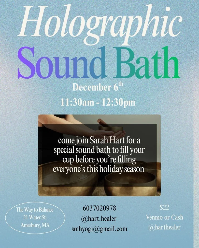 Back to All Events Holographic Sound Bath Saturday, December 6, 2025 11:30 AM 12:30 PM Google Calendar ICS
